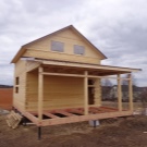 Takšen projekt lahko izberete tudi sami. Velika odprta terasa z ograjo bo zagotovo navdušila ljudi. Rolete zagotavljajo boljšo zaščito pred vremenskimi vplivi. Enodelna lesena konstrukcija v celoti izpolnjuje ekološke in sanitarne zahteve. Nenazadnje je bila uporabljena poševna dvokapna streha, ki zagotavlja ravnovesje med odpornostjo proti vetru in obremenitvijo s snegom.
