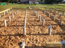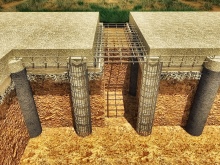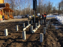 Izračun navrtanih pilotov za hišo za savno ni potreben. Razmik med pritrdilnimi točkami ne sme biti večji od 3 m. Včasih so "majhne" vrtine na vrhu povezane z enim betonskim pokrovom. Posebej je treba omeniti temelje, ki so gnani s piloti. Podobna rešitev: