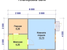 Seveda je pomembno, da skrbno izberete in pripravite tudi projekt savne na pilotih. Najmanjša dejanska velikost takšne konstrukcije je zdaj 4x6 m. V takšni sobi je mogoče oblikovati skoraj vsako postavitev - za vse okuse in proračune. Tipične komponente so: