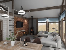 V sobi za prosti čas boste lahko postavili mizo in nekaj kavčev, pri čemer ne bo prišlo do nepotrebne prenatrpanosti. Odpoved pokriti terasi včasih še poveča nevšečnosti. Vendar ga je mogoče zlahka vključiti v popolnoma montažni standardni projekt. Če je terasa že predvidena, je smiselno urediti tudi velik dnevni prostor, tudi z dodano multimedijsko opremo. Na podstrešju je pogosto na voljo druga dnevna soba, alternativna rešitev pa je ena sama dnevna soba na podstrešju in velik pralni prostor pod njo.