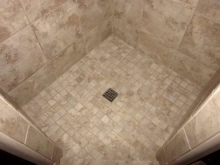 - točkovni odtok lahko postavite kjer koli v kopalnici, pri tem pa poskrbite, da so tla na vseh štirih straneh poševna;