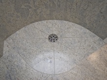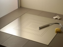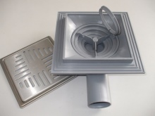 - polaganje malte tako, da na površini ostane viden le prirobnični krog odtoka, pri čemer je treba zagotoviti potreben naklon do odtočne točke;