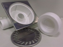 - Vgradnja sifona, gumijastega tesnilnega obroča in okrasne rešetke na odtočno prirobnico.