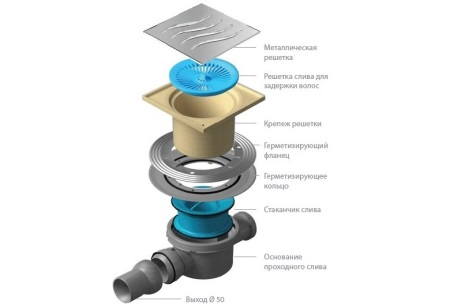 Tudi velikost odtokov je različna in se izbere glede na premer dovoda v kanalizacijski cevi v kopalnici.