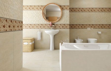 Ta zbirka je kot nalašč za oblaganje kopalnic. Njeni umirjeni toni bež in rjave barve se zlahka vključijo v vsako notranjo opremo. Prefinjenost in harmonijo barvne sheme poudarjajo cvetlični okraski v kombinaciji z imitacijami pravega kamna. Naravna lepota v kombinaciji z elegantno oblikovno rešitvijo bo kopalniški prostor napolnila z neprekosljivim okusom in očarljivo igro barv.