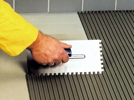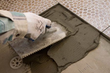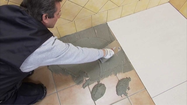 Za polaganje ploščic na tla gradbeniki priporočajo uporabo gladilke "8". Velikost obloge je večinoma 30x30, zato boste za 1 m² potrebovali 5 kg lepila.