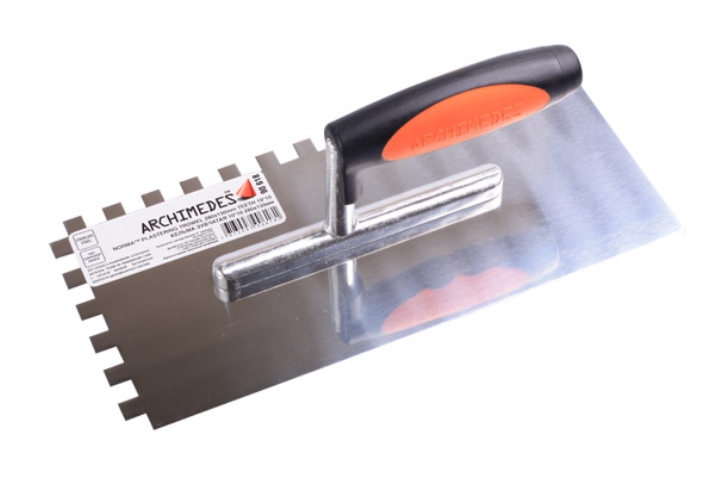 To je zato, ker med nanašanjem lepila ni mogoče izmeriti debeline plasti. Zato je treba z ravnim koncem orodja najprej nanesti plast lepila, nato pa ga z zobato lopatico razgrniti, da se lepilo enakomerno razporedi po površini.