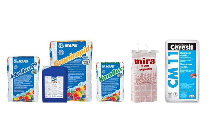 Cement. Ta vrsta lepila je še posebej priljubljena, ker je enostavna za uporabo, varčna in poceni. Z njim lahko lepite ploščice tudi na mestih, kjer so videti problematične, in ga zlahka odstranite z minimalno izgubo. Najpogostejši predstavniki te kategorije lepil so Unis, Ceresit, Hercules in EC.
