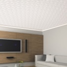 - Stisnjeno. List polistirena se položi v poseben kalup in stisne skupaj. Rezultat je precej krhka plošča, katere glavna prednost je nizka cena. Ni ga mogoče očistiti, temveč ga lahko le občasno obrišete z vlažno krpo. Ta plošča je na voljo v omejenem obsegu okraskov in je idealna za tiste, ki ne želijo ustvariti izvirne, nenavadne notranjosti, temveč imajo raje tradicionalne klasike.