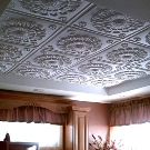 Za okrasitev stropne obloge se uporabljajo različne rozete, rombi, letve in drugi elementi.