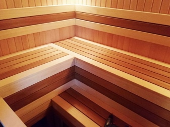 Hyllorna är alltid nivåindelade. Avståndet från en nivå till nästa är 0,4-0,6 m. Beroende på bastukabinens storlek kan man göra 2-4 nivåer. Varje hylla består av en ram som består av 50x70 mm virke. Detta används för att bilda en vertikal och horisontell överliggare med ett avstånd på 0,5-0,6 m mellan stolparna.