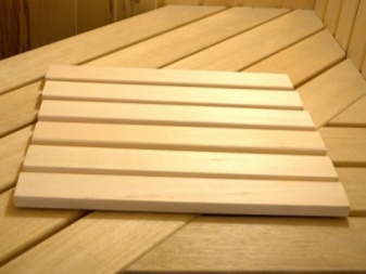 Tunnare brädor, endast 20 mm tjocka, används som golv för bänkarna. De är fästa vid ramen med ett litet mellanrum. För utflödet av vatten i ångbastun placeras hela konstruktionen med en svag lutning på 1-2 grader från horisontalplanet. Klassiska fästelement innebär installation av träkilar, med hjälp av skruvar som måste vara infällda i massivt trä med 0,5 cm för att undvika bränning.