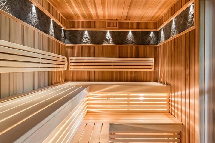 - Fytoterapi. När temperaturen i rummet ökar kan du känna de eteriska komponenter som frigörs av naturmaterialet, vilket bidrar till den övergripande fördelen med spa-upplevelsen.