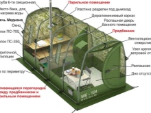 Det är värt att komma ihåg att små vinterbasturum inte alltid är bekvämare och mer praktiska än sommarbasturum. Vanligtvis byggs lådan på ett visst avstånd från huset, i närheten av en konstgjord reservoar eller pool. I versionen med en våning ingår: