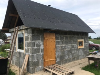 Konstruktionen av ett monolitiskt miniatyrbad bygger antingen på sågspånsblock eller på monolitiska gjutgods. Först installeras en avskalad formsättning. Därefter hälls väggarna med en förberedd blandning.