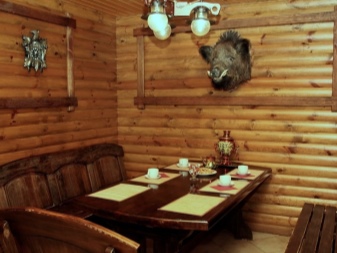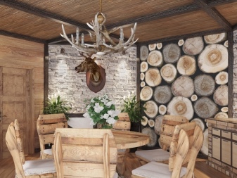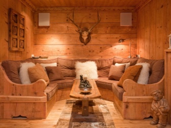 Användningen av olika lamellprofiler bidrar till att skapa en originell inredning. Slipade brädor används ofta för paneler. Men den obearbetade brädan ser mer intressant och ännu mer unik ut. Att använda samma träslag för både väggar och tak bidrar dessutom till att dekorera utrymmet. I vissa fall har man också valt chalet-inspirerad design.