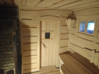 Utformningen av en rustik bastu i rysk stil är långt ifrån den traditionella badhusstilen. Ingen skulle använda gammaldags, små fönster och låga dörrar i dag. Och höga tröskelvärden har för länge sedan övergivits i alla projekt, hur omfattande de än är. Moderna metoder och material bidrar till att spara värme. Det som inte har förändrats på insidan är önskan att ha en klassisk struktur (entré, tvättrum och ångbad).