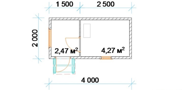 Den här ritningen är lämplig för dem som vill bygga en bastu på 2 x 4 meter; trots den blygsamma storleken finns alla nödvändiga rum med.