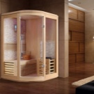 Den infraröda kabinen Sawo SR05-0500490 förtjänar uppmärksamhet. stuga Sawo SR05-0500490. Detta är en utmärkt lösning med en total effekt på 7x0,17 kW. Dörren är gjord av glas. Mått 1 m x 0,9 m x 1,9 m. En fjärrkontroll används för att styra bastun, vilket också är värt att nämna, liksom avancerade ventilations- och belysningssystem.