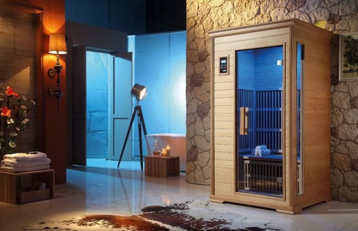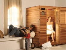 Annan elektrisk (eller snarare infraröd) bastu av en enda typ från företaget "Gifts of Cedar" fungerar lika bra. De infraröda strålarna avges av en kolkomponent. Tillverkaren lovar harmoni i alla inredningar. I standardpaketet ingår användning av en fotstång, men inget golv tillhandahålls. Den kan dock beställas som ett tillbehör.