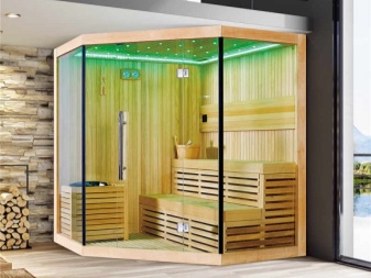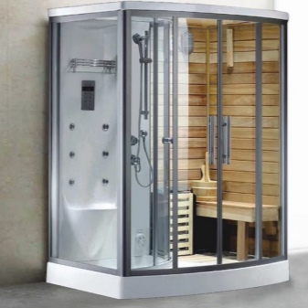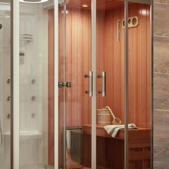 Bastukabinens ytskikt kan tillverkas av olika typer av träbaserade material. Valet beror på priset, de hygieniska fördelarna och din personliga smak. De yttre panelerna finns i glaserat, transparent eller strukturerat glas. Bastukabinerna har samma geometri som konventionella lösningar. Det är värt att notera att sådana enheter kan vara slutna, öppna eller blandade.