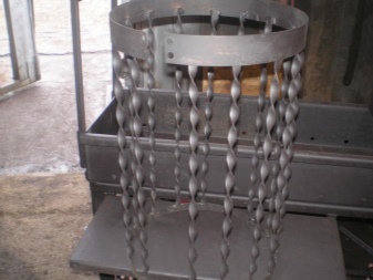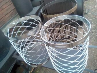 Därefter kan du fortsätta att montera nätet. Delarna svetsas ihop enligt det valda arrangemanget. Alla sömmar måste svetsas noggrant under arbetet så att korgen klarar belastningen och inte deformeras. Även slagg och skal måste rensas bort efter att svetsningen är klar. På områden som är svåra att nå med en slipmaskin kan du slipa för hand med sandpapper. I vissa fall måste arbetet utföras direkt runt skorstenen om det inte är möjligt att demontera den. Då är det nödvändigt att skydda skorstenen från stänk av smält metall.