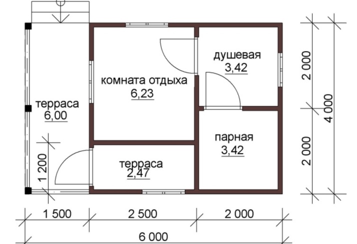 För att kunna bygga ett 6 x 4-komplex måste varje meter användas på ett rationellt sätt, eftersom det blir mycket svårare, ibland omöjligt, att bygga om något. Den faktiska utformningen av bastuns interiör beror på ägarens önskemål. Vissa vill ha ett rymligt ångbad, medan andra föredrar ett separat duschrum. För många är det viktigt med en rymlig relaxavdelning. I detta fall kan förbadet minskas.