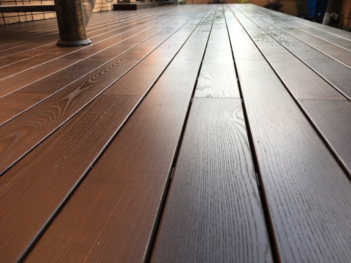 Terrassbrädan behandlas med speciella föreningar och oljor för att förhindra svamp, mögel och olika mikroorganismer.