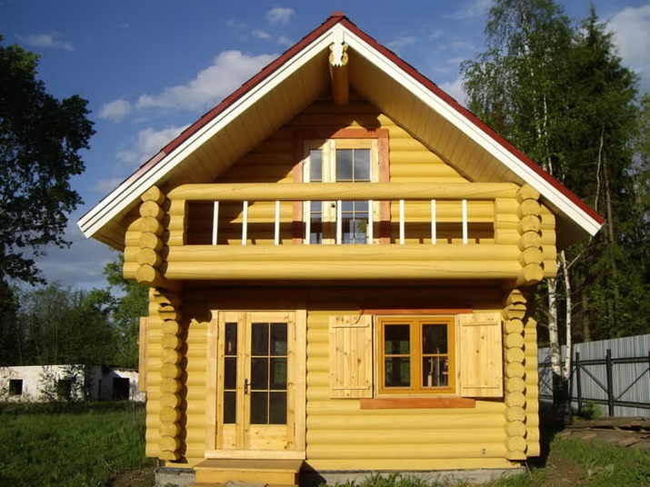 Ett 4 x 6-badhus kan byggas i en eller två våningar. Lägg till en veranda, i stället för en fullfjädrad första våning kan du göra en vindsvåning. En intressant lösning skulle vara en terrass runt badet, så att du kan gå barfota runt huset efter ångbadet: dina fötter kommer tack och lov att reagera på en sådan massage. Många kompletterar första våningen med en balkong.