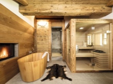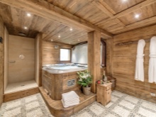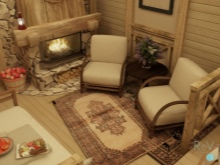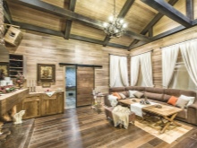 Inredningen kan bestå av träpanel eller bjälkar. Viktigt: Trots den gammaldags stilen får chaletet inte se billigt ut. Tvärtom skapar det nödvändigtvis ett intryck av elegans och lyx. Även i de minsta utrymmena är det viktigt att skapa ett fullfjädrad komplex som är tilltalande för ögat.