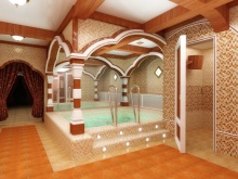 Ljusa och frodiga färger används i den här versionen. Textilierna ska ha en överdådig look. Betoning på exotiska designelement och unika möbler rekommenderas. Ett exemplariskt turkiskt hammam är nödvändigtvis dekorerat med mosaik.