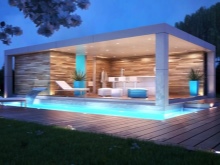 Den här stilen är något för den som gillar moderna och snygga bastur. Den är alltid inriktad på en elegant och vacker design. Elegans är ett måste, men alla typer av rörighet är avrådda. Ju fler öppna ytor desto bättre. Högteknologiska möbler är idealiska med raka (som om de vore "huggna") linjer och uttalade vinklar.