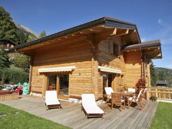 Den design som var typisk för de alpina herdarna i det förflutna fortsätter att tilltala människor i dag. Även om det finns modernare och mer ändamålsenliga konstruktioner minskar inte chaletstilens popularitet. Det är en verkligt unik lösning som gör att du kan sticka ut från mängden. Sockeln på ett badkar i denna stil är nödvändigtvis gjord av natursten. Väggarna är gjorda av stockar och bör vara minimalt trimmade eller ibland inte trimmade alls.