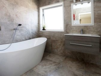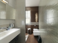 Ljusa färger passar bäst i ett litet badrum, medan mörkare nyanser är att föredra på golvet. Plattor av mindre storlek än genomsnittet är mer lämpliga - de distraherar inte ögat och förstorar visuellt väggarna. För ett rymligt badrum är det bäst att köpa en stor kakelplatta och kombinera den med en medelstor kakelplatta. Ett stort utrymme gör det möjligt att uppfylla alla önskemål!