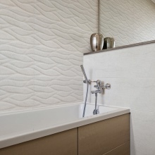 En mycket smart, men mindre praktisk, kakelplatta med 3D-mönster. De utskjutande delarna kan vara en del av varje kakel eller så kan själva elementet vara helt tredimensionellt. Det finns till och med varianter där en handduk eller klädkrok växer ut ur själva kaklet. 3D-plattor kan dock också vara platta, men i en viss vinkel kan de verka djupa och visa alla möjliga mönster eller till och med scener.