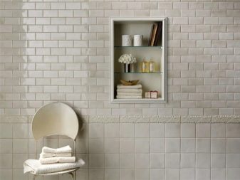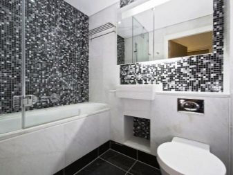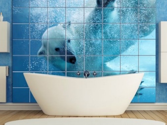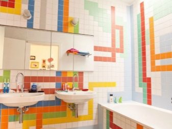 Det finns minivarianter - plattor 10x10, som döljer kurvorna väl på väggarna och ser bra ut tillsammans med de större elementen. Mindre rutor kallas mosaikplattor. De säljs vanligtvis redan limmade på ett nätstöd, vilket gör dem lätta att installera.