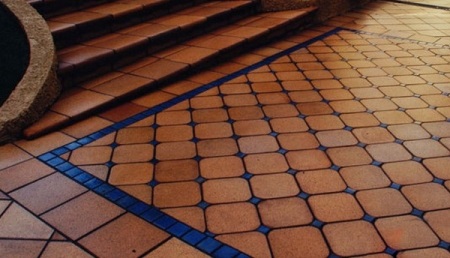 Plattor tillverkade av röd lera, oftast utan glasyr. Måste behandlas med en vattenavvisande lösning efter läggning, eftersom det är poröst och absorberar fukt.
