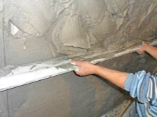 Om underlaget är tegel kan putsen inte avlägsnas. Det räcker att kontrollera dess styrka och integritet och att slipa bort eventuella skadade områden. Vid behov kan ett nytt lager gips läggas på. Särskild uppmärksamhet kommer att ägnas åt att jämna ut väggen.