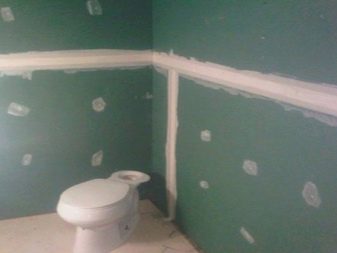 När alla plattor har monterats tätas skarvarna mellan dem med ett spackel. Det färdiga golvet måste grundas på nytt. I fuktiga rum bör man välja gipsskivor med mycket hög fuktbeständighet.