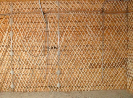 Den mest tidskrävande ytan är trä. Till att börja med beläggs väggen med en speciell träprimer i flera lager. När primern har torkat helt och hållet appliceras och fästs ett gipsnät. Därefter utförs ytterligare arbete.