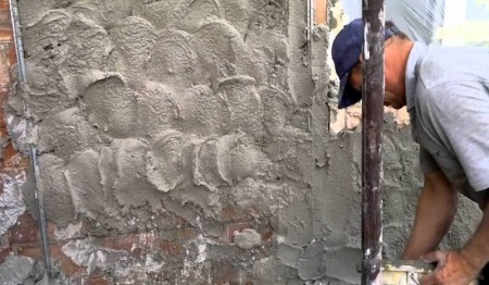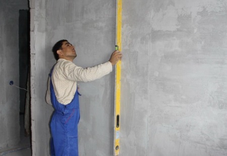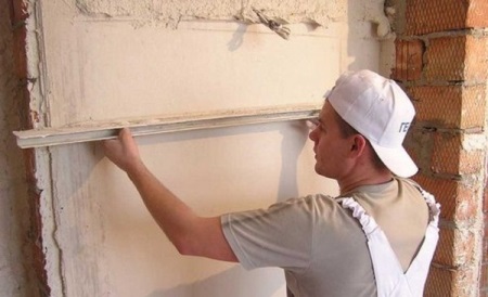 Gipsbruk som förbereds enligt anvisningarna appliceras på väggen mellan avjämningsmassorna. Den appliceras bäst med en murslev och med hjälp av en utjämningsregel för att jämna ut verktyget. När putsen har torkat helt ska väggen behandlas med ett antiseptiskt medel och en primer. Underlaget bildar en tunn, slät film som förbättrar vidhäftningen mellan putsen och det efterföljande lagret av spackel eller lim.
