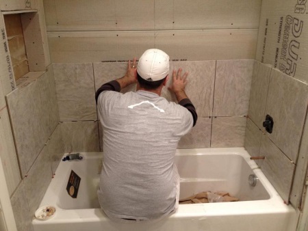 Den första diagnosen innebär att man bedömer väggarnas allmänna skick, hur stark den gamla beläggningen är och beräknar vilket material som behövs. Nästa steg är att rengöra ytan från gamla kakelplattor, gips, tapeter, kalk, färg osv. Det tredje steget är att anpassa väggarna. Nästa steg är efterbehandling (spackling + grundmålning) och vattentätning.