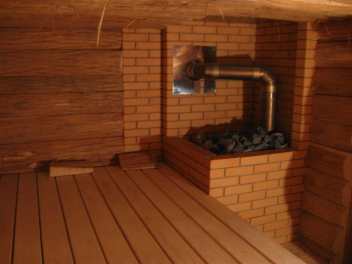 如果桑拿房的墙壁是由砖头制成的,很难想象这样的房间没有装修。 唯一的例外也许是隔断墙,它将炉子引向相邻的房间。这个隔墙不需要完成,特别是面对桑拿的部分。