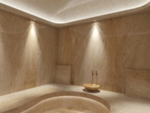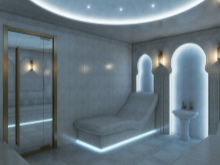 要享受土耳其桑拿浴,你不需要去遥远的东方国家,你可以在家里通过在公寓里安装土耳其浴室来实现。 在规划这种桑拿房的设计时,必须注意到它完全用天然石材装修(这是与俄罗斯桑拿房的主要区别,俄罗斯桑拿房的表面是用木材衬垫的)。大理石通常用于建造土耳其浴室,缟玛瑙则用于装饰。土耳其浴室的内部必须有一个带冷热水的盆子,用于清洗。