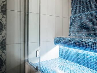 - 用于小房间。 你将需要最多2.5平方米的空间来做土耳其浴室。墙壁应该用浅色调的天然大理石装饰,床铺用实心石砖,座椅和床铺的水平面用带有东方图案的玻璃马赛克装饰。你可以选择任何颜色的方案,最好是明亮和对比的。