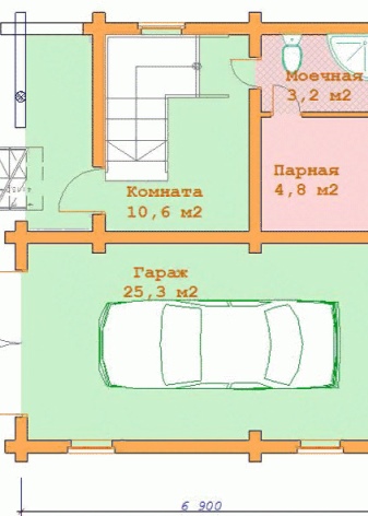 当然,一个高质量的车库组合式桑拿房只能根据仔细考虑的计划来建造。而最传统、最令人期待的选择是在地下一层创建一个清洗区。在这种情况下,汽车和你需要的一切都会在楼上。这样的变体不是偶然的,也不是因为单一的习惯而常见。如果你把桑拿房和车库一起放在上层,建立通信将变得非常复杂。