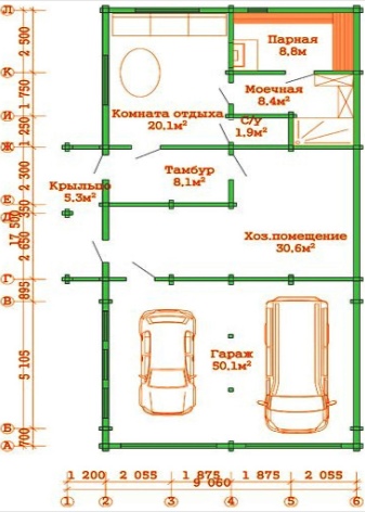 当你考虑布局时,你必须考虑有多少辆车会停在车库里,有多少人同时会洗。不宜以牺牲放松室为代价使洗涤室和蒸汽室变窄。这个解决方案的缺点多于优点,许多人已经感到失望了。 规划的最终结果应该是一张显示布局的图表。