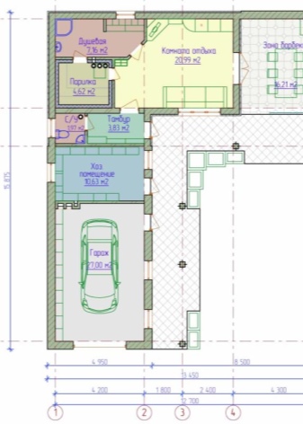 在这种情况下,值得提供一个前庭,方便通往车库和娱乐区。 顺便说一下,这个实用单元还可以用来储存食品用品、罐头、备件、不需要的临时衣物和其他物品。 如果不需要这样的房间,你可以准备一个健身房,台球室,甚至办公室或客人卧室来代替。