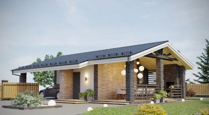 砖块的选择通常是出于装饰的原因。 它既可以单独使用,也可以与深色木材和金属结合使用。然而,所有这些材料都需要小心保护,防止受潮。屋顶通常是用瓦片按照建筑主要部分的布局来完成的。