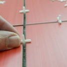 一旦每个单独的瓷砖被固定,元素之间的交叉必须被固定。可以用一个橡胶锤来纠正材料的位置。
